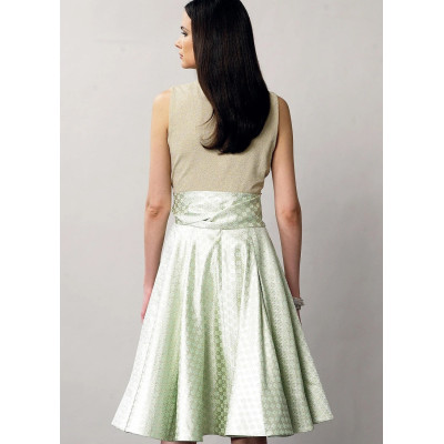 Střih Vogue na varianty širokých sukní s pasem, sklady a zadním zapínáním na zip