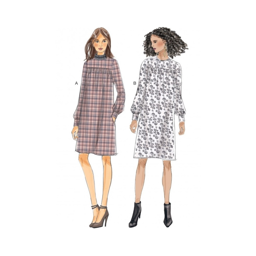Střih Butterick na nabírané halenkové šaty s gumou v pase (4 varianty)