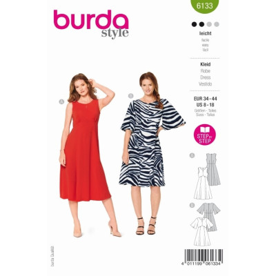 Střih Burda na šaty v empírové linii bez rukávů / s rukávy a širokou sukní