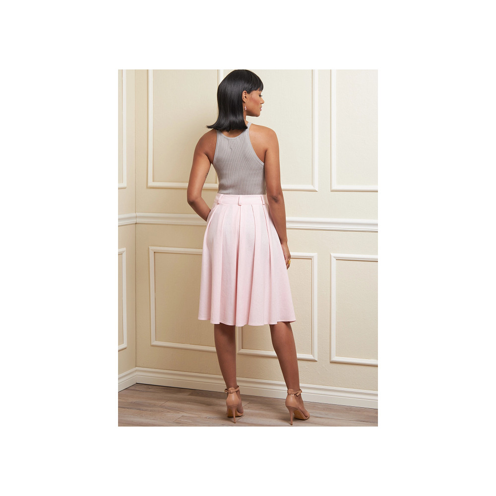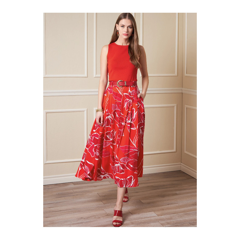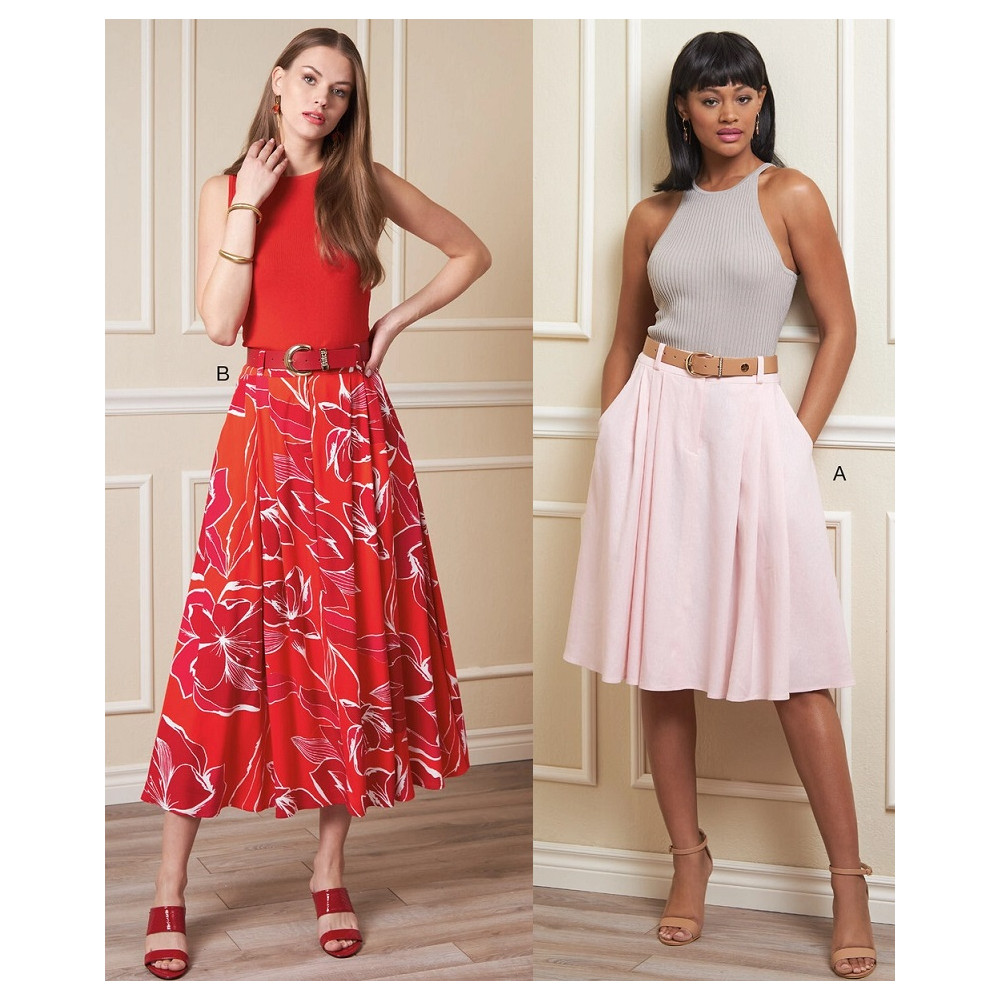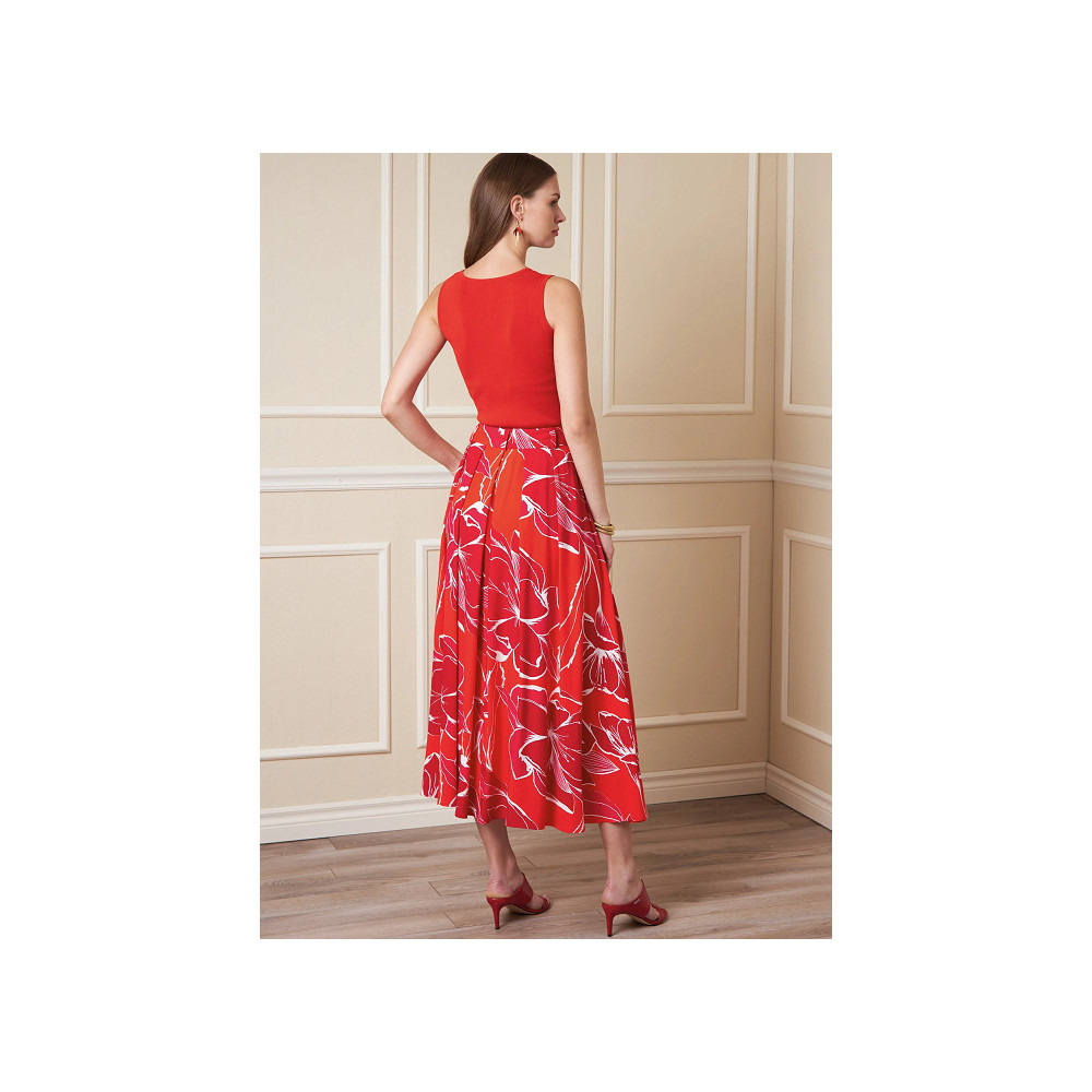 Střih Vogue na širokou sukni (2 délky) na knoflík a s poklopcem na zip, kapsami a sklady