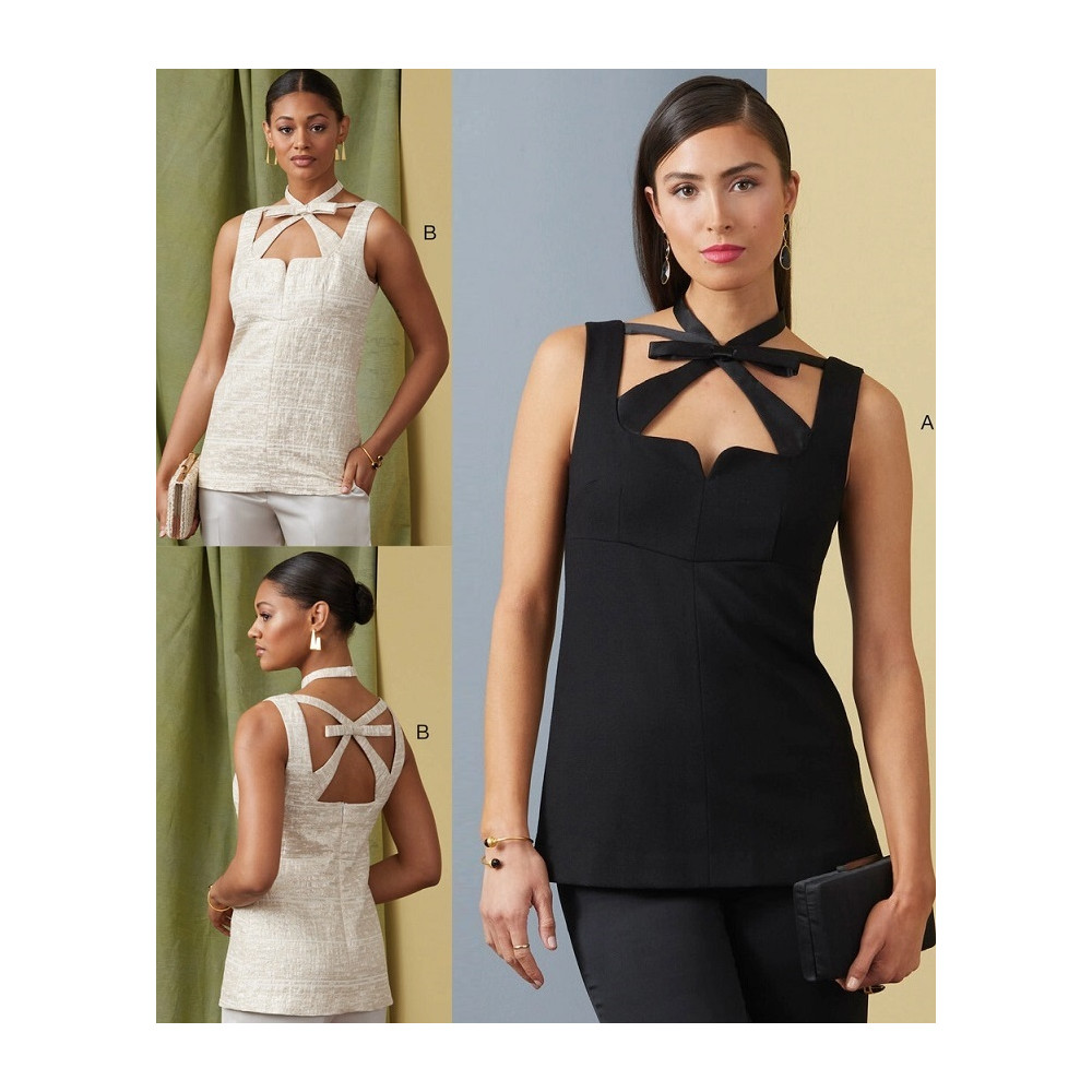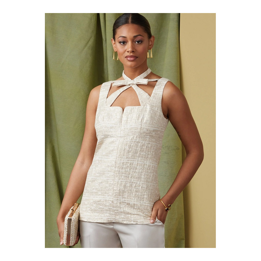 Střih Vogue na empírový top na ramínka se srdíčkovým výstřihem a zavazováním v dekoltu