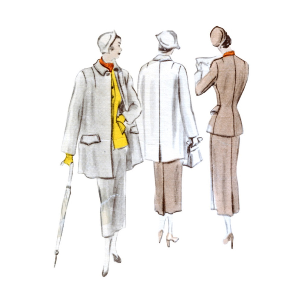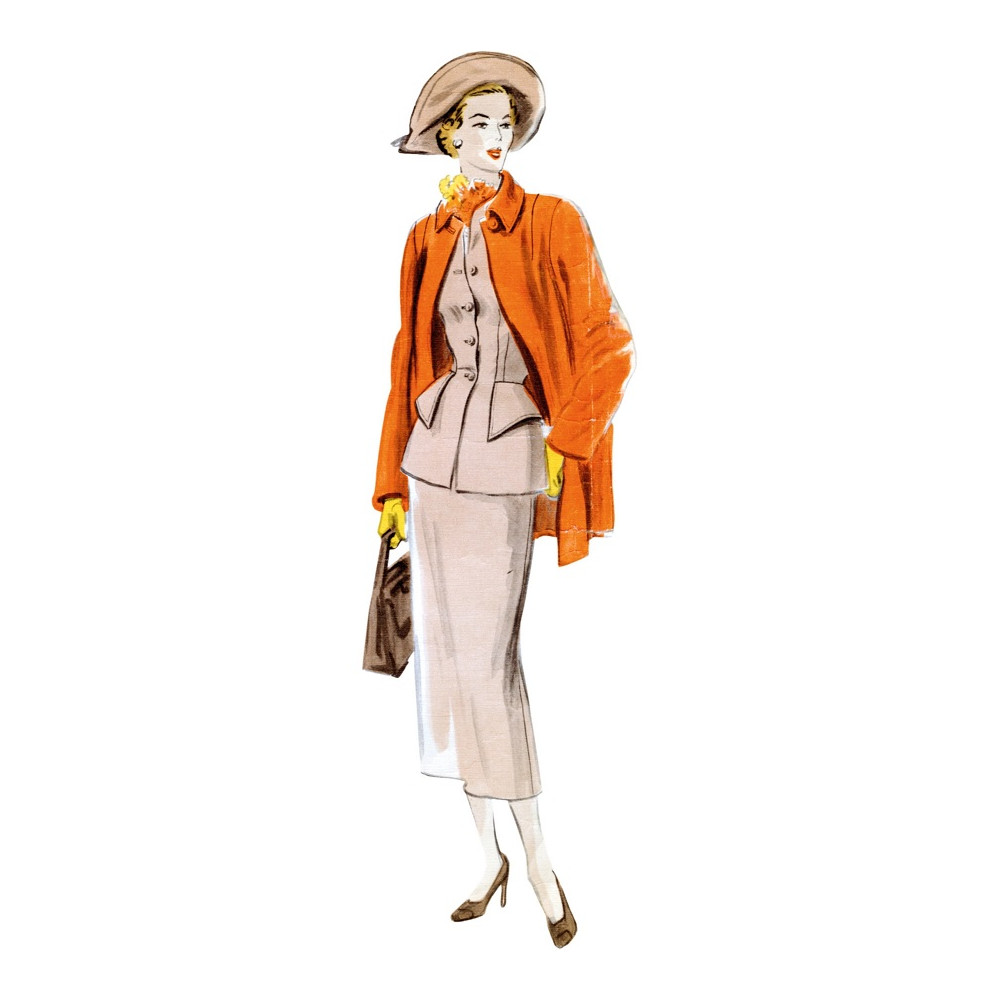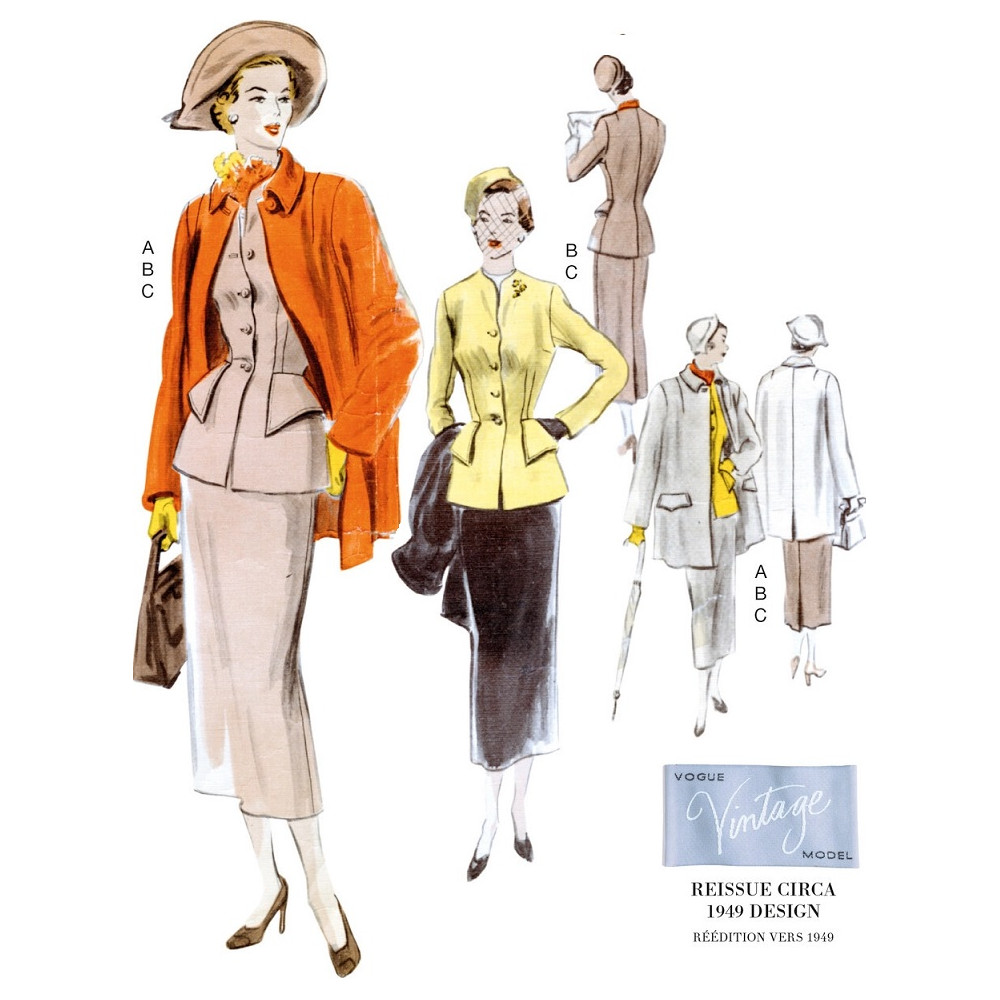 Střih Vogue - Vintage model z roku 1949: sako bez límce, úzká třídílná sukně a krátký kabátek