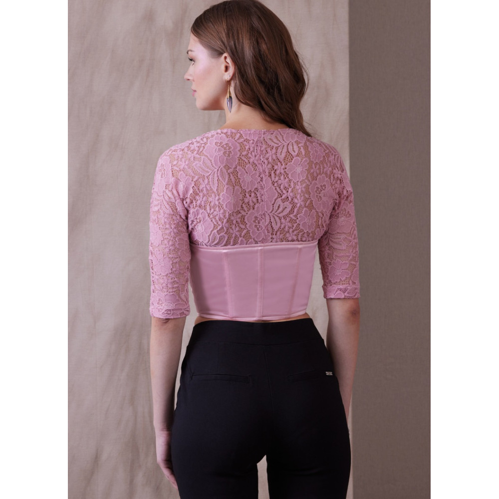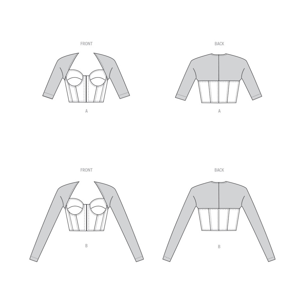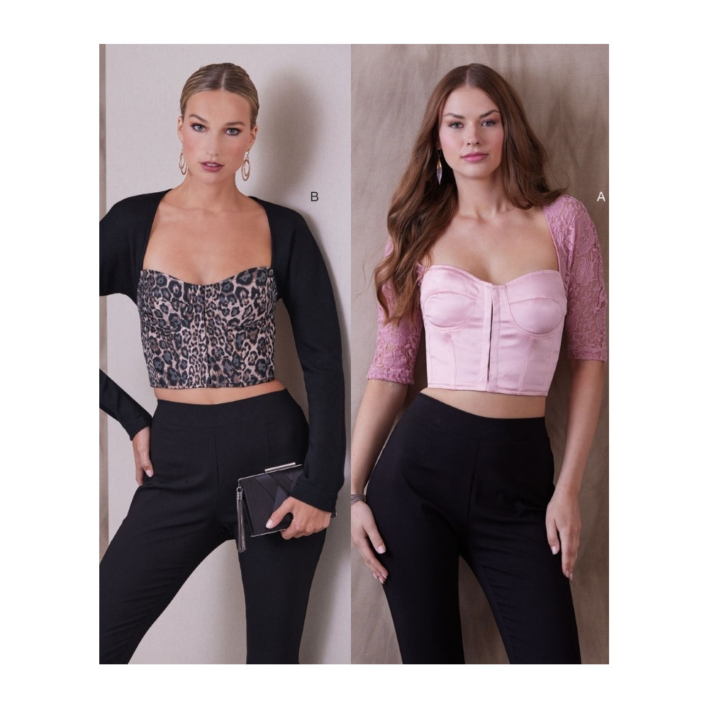 Střih Vogue na korzetový top se srdíčkovým výstřihem, zapínáním vpředu na háčky a očka a rukávy
