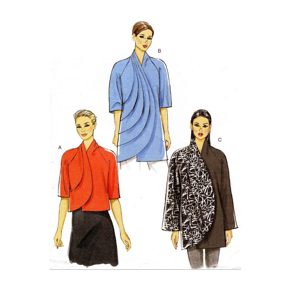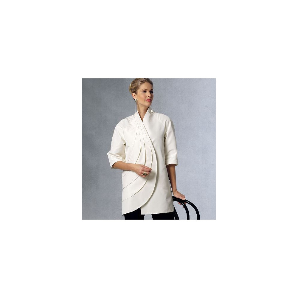 Střih Vogue na volné sako se stojáčkem, sklady a zaobleným asymetrickým předním dílem