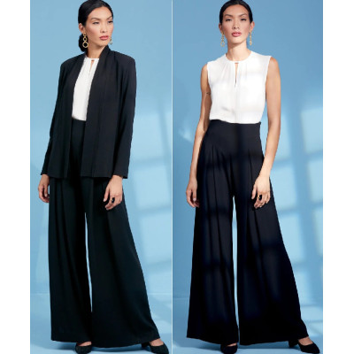 Návrhářský střih Vogue na kalhoty se širokými nohavicemi a svrchní sukní se sklady
