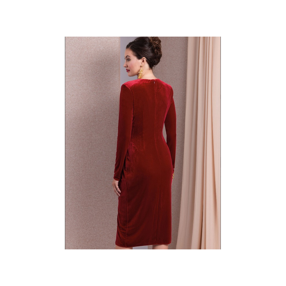 Návrhářský střih Vogue na nabírané šaty s dlouhým rukávem a zavinovacím efektem