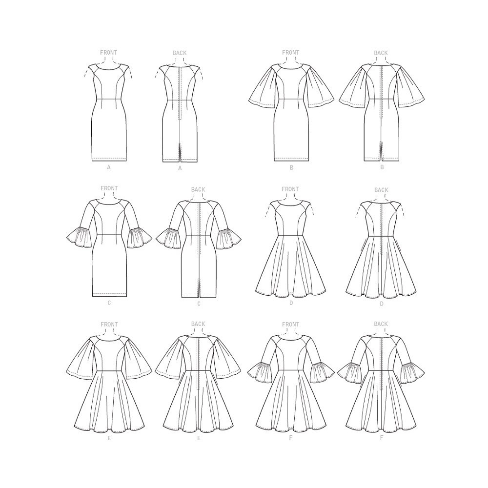 Střih Butterick na áčkové šaty ve dvou délkách s kulatým / V-výstřihem a princesovými švy
