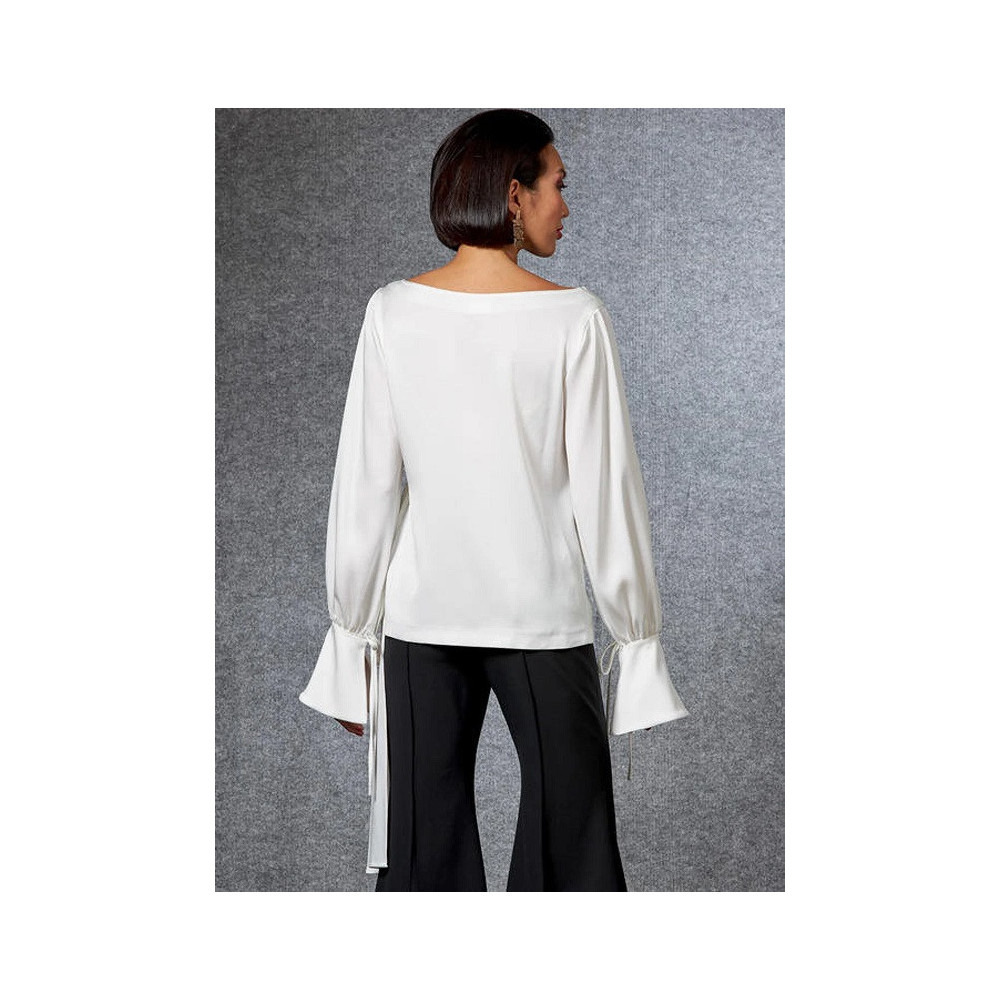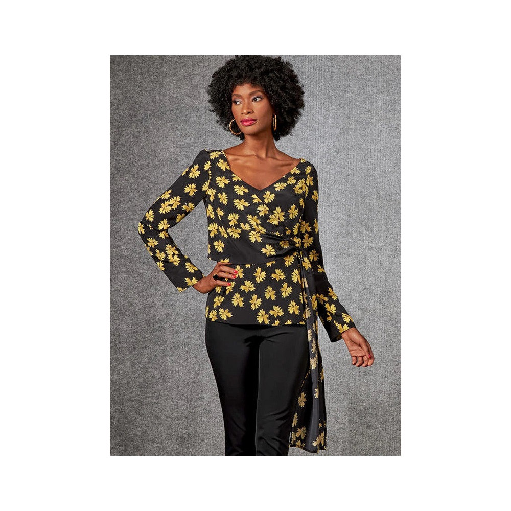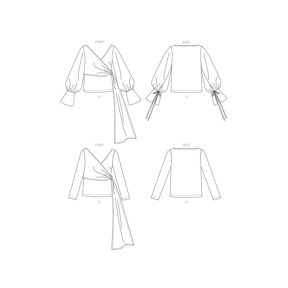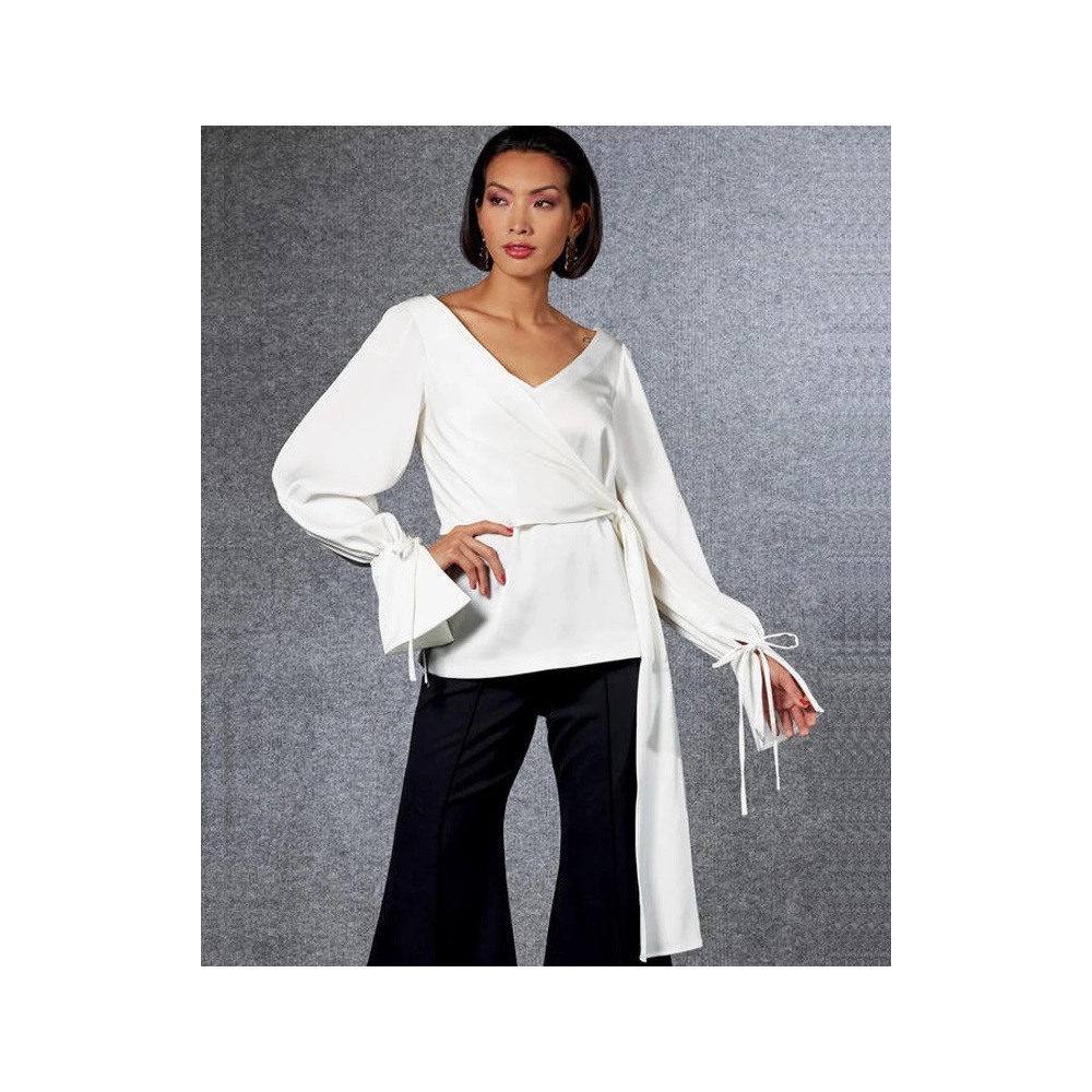 Střih Vogue na halenku se zavinovacím dílem přecházejícím do drapé a variantami rukávů