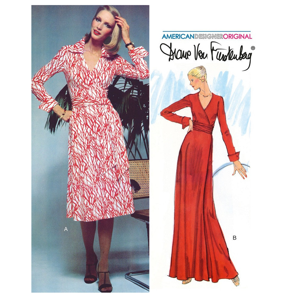 Vintage návrhářský střih Vogue ze 70. let na zavinovací šaty od Diane von Furstenberg