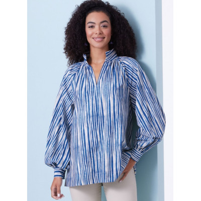 Střih Butterick na top s páskem, kulatým výstřihem, předním zapínáním na knoflíky a princesovými...