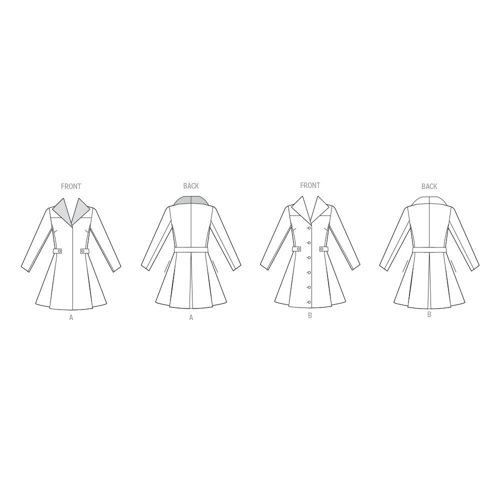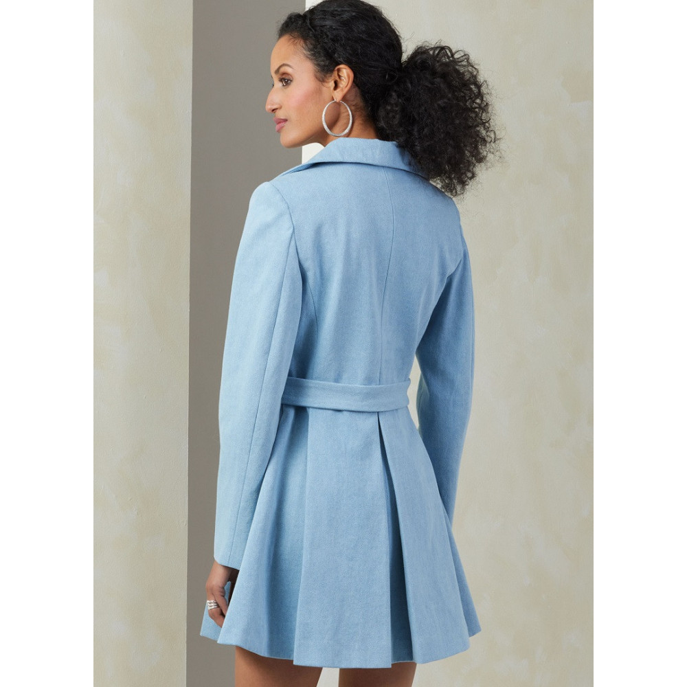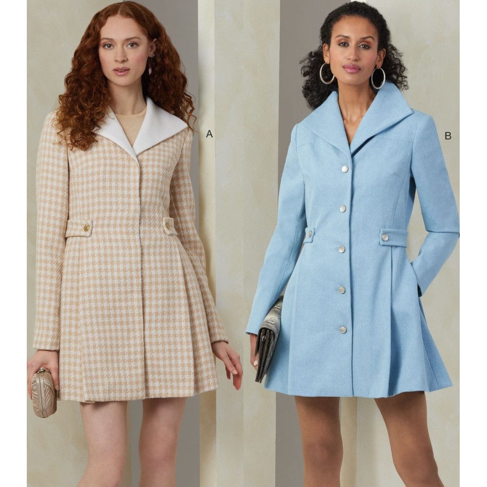 Střih Vogue na kabát se širokým límcem ve variantě se skrytým zapínáním a předními a zadními sklady