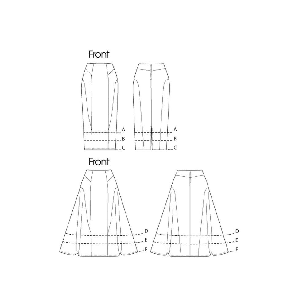 Střih Vogue na 6 variant sukní s detailem švů - úzké sukně nebo sukně projmuté na bocích a rozšířené do stran