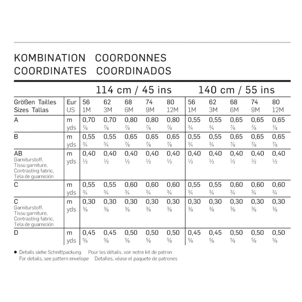 Více se dočtete v popisuStřih ve velikostech EUR 56-80, úroveň obtížnosti šití: 2 (lehká), doporučené látky: bavlna