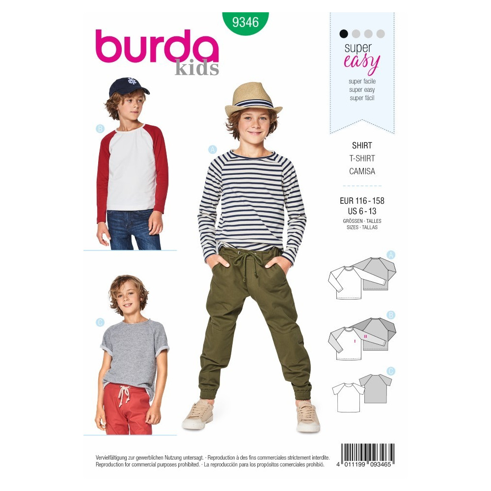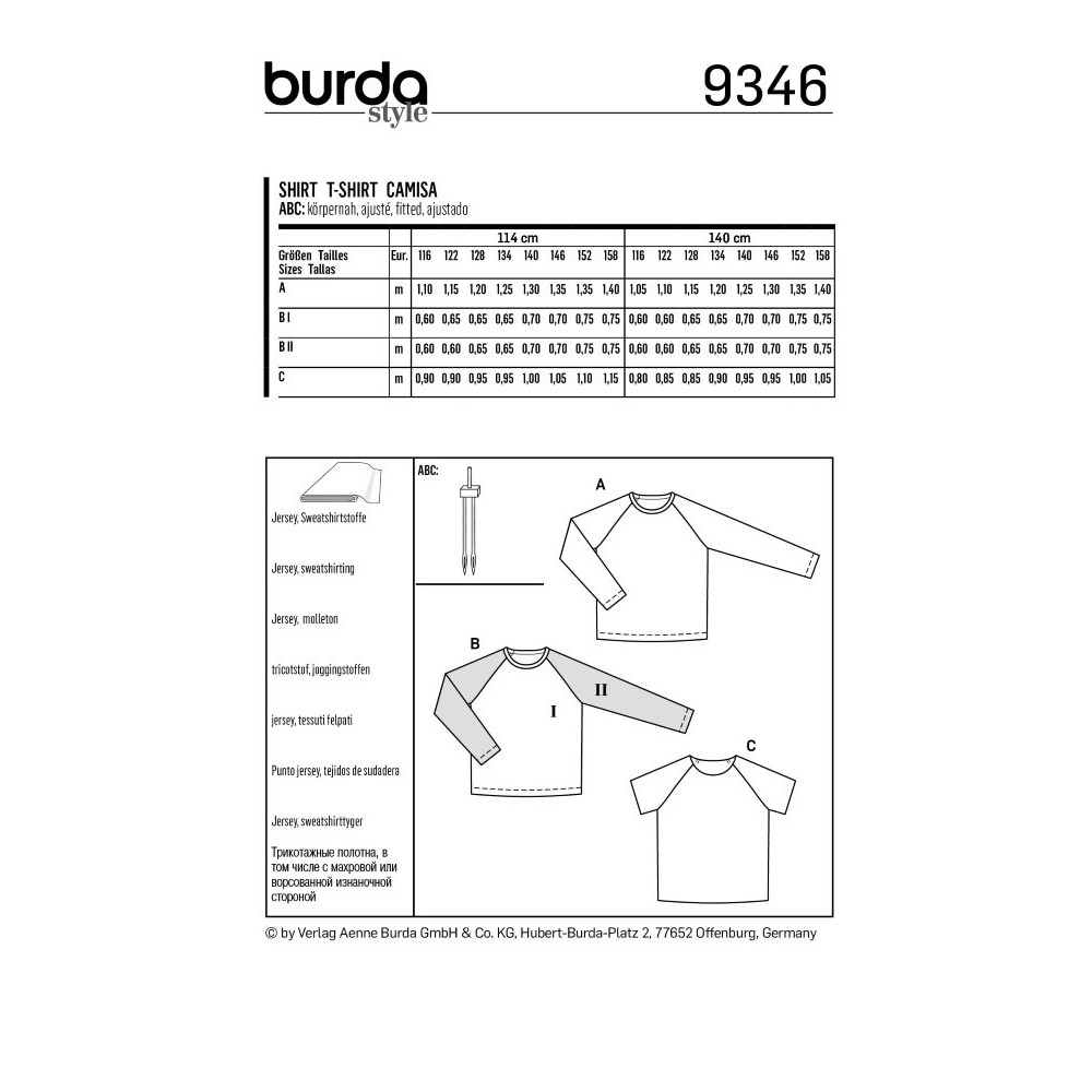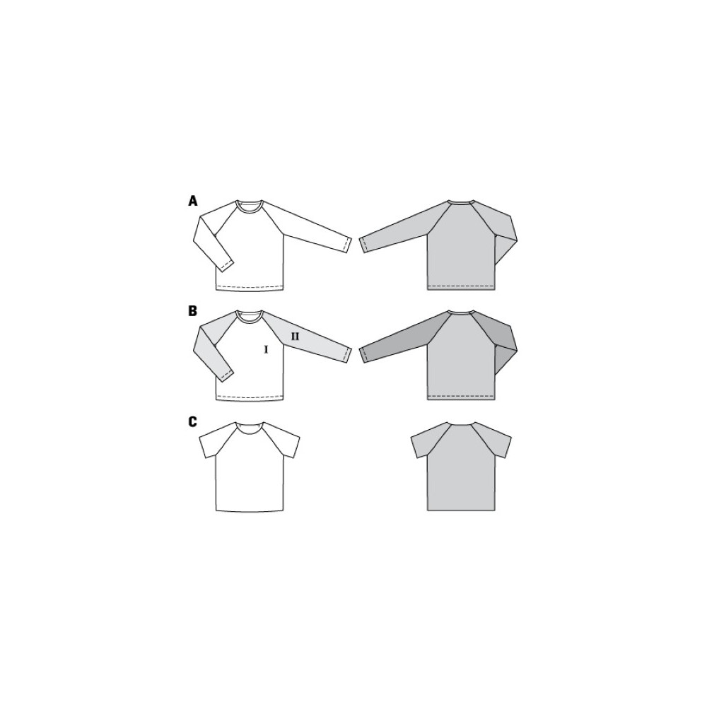 Více se dočtete v popisuStřih ve velikostech EUR 116-158, úroveň obtížnosti šití: 1 (velmi lehká), doporučené látky: žerzej, mikinovina