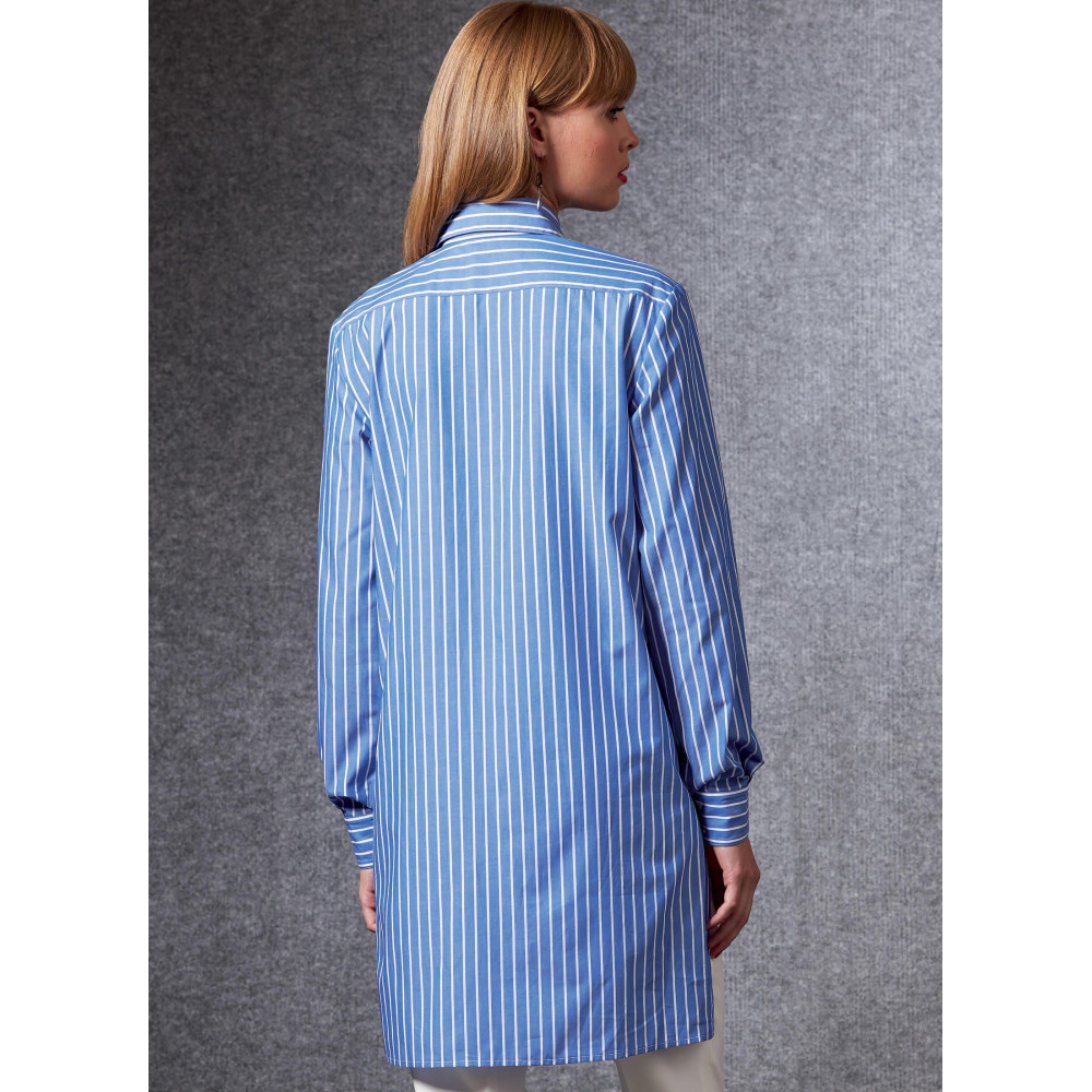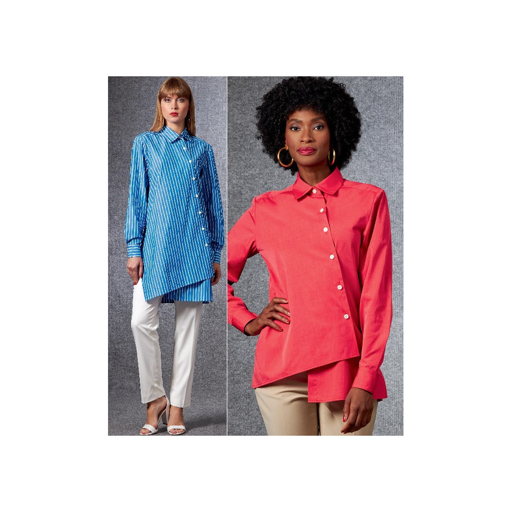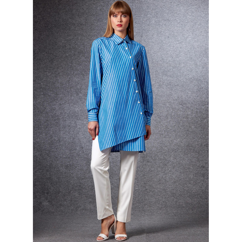 Střih Vogue na volnou košilovou tuniku / košili s asymetrickým zapínáním